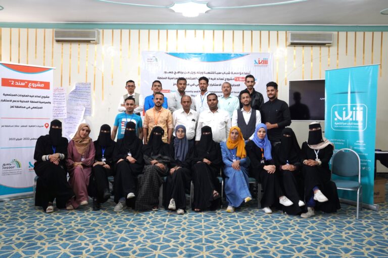 ودشنت مؤسسة شباب سبأ للتنمية المشروع بدورتين تدريبيتين في الحوارات المجتمعية وبناء الشبكات وإدارة حملات التوعية لعدد عشرون شاب وشابة من ممثلي المجالس المجتمعية بمديريات مدينة تعز الثلاثة وتحالف شباب الأحزاب السياسية بالمحافظة.